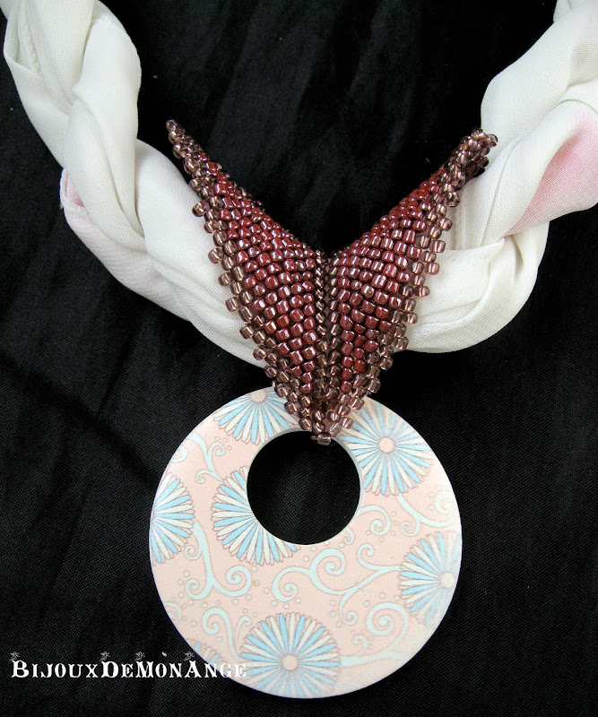 Accesoriul de sustinere al pandantivlui este lucrat manual din sute de margelute mici.