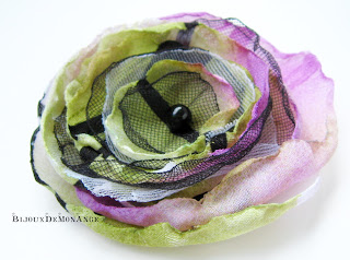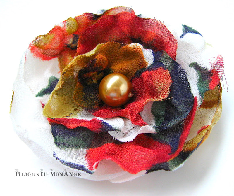 Inainte de ultimul targ la care am fost (despre care n-am scris nimic pentru ca, desi am fost cateva ore in fiecare zi, n-am ce povesti intrucat m-am simtit foarte rau ...) am inceput sa realizez brose-flori din material textil (dorinta a pornit de la o minunata floare ce am primit-o de la GAriana si pe acre o ador) si imi place la nebunie, am o gramada in lucru deja, totul pentru a imbogati colectia "Gradinile Suspendate"