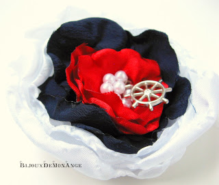 5. Sailor's Dream - matase, satin, perle acrilice, accesoriu metalic, suport placat cu argint - 7.5 x 8 cm