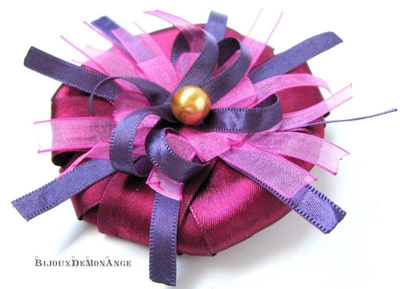 2. Violet Dream - voal, tulle, perla sticla, suport placat cu argint - 8 x 9.5 cm diametru