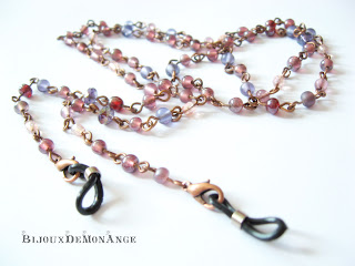 Nu e bratara, stiu!! Dar e atat de frumoasa combinatia de mov, violet, grena si cupru :) E un accesoriu pentru ochelari, facut pentru o doamna de nota zece! Poate fi purtat si drept colier, daca se indeparteaza inelele de cauciuc :p